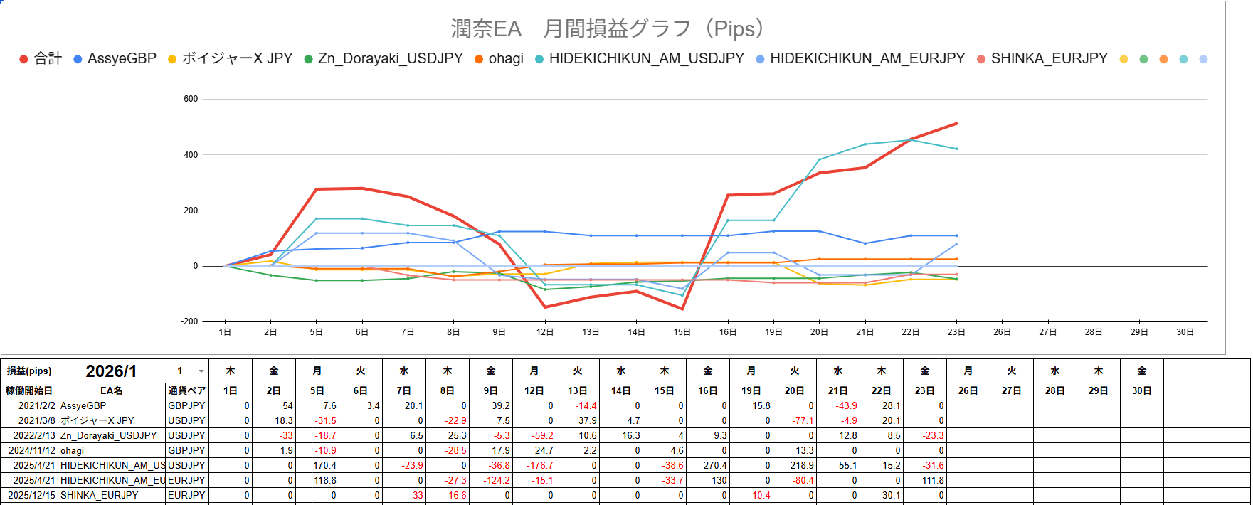 2026年1月19日~1月23日 自作EA損益報告