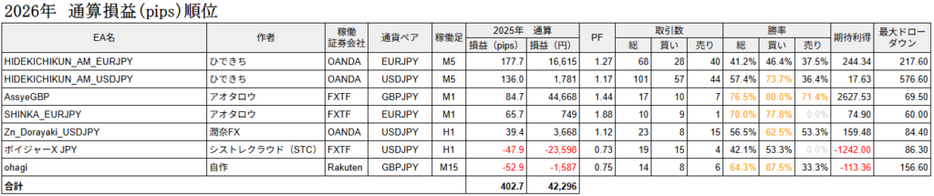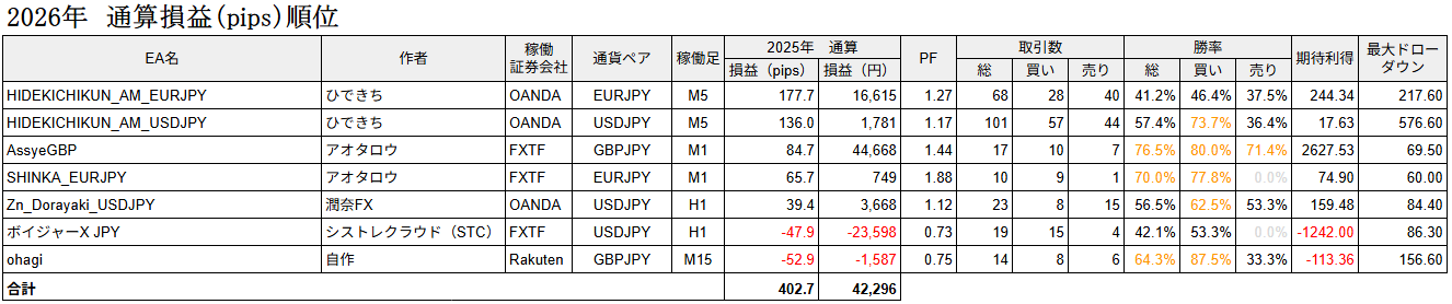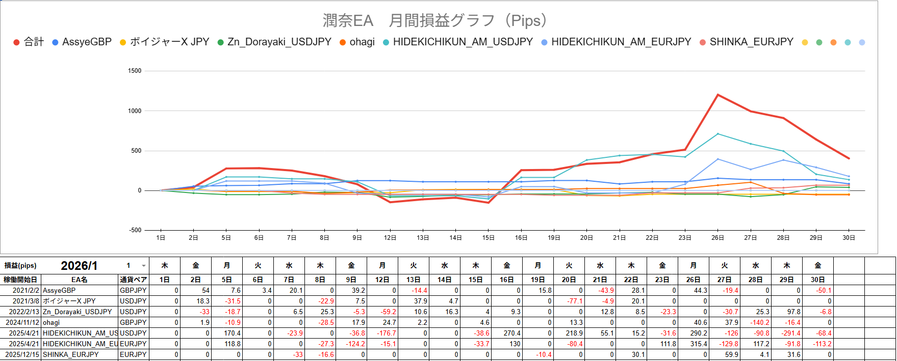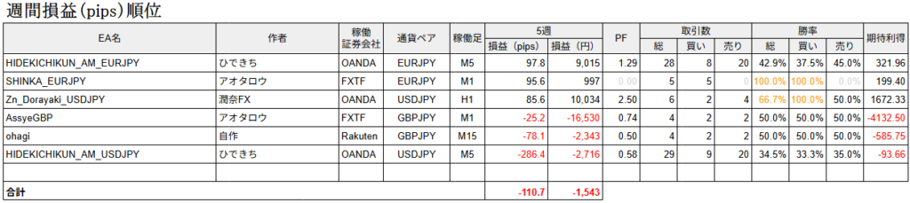 EAはHIDEKICHIKUN_EURJPYとSHINKA_EURJPY、Dorayaki_USDJPYがプラス着地が出来ました。