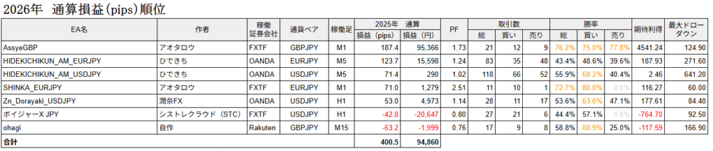 HIDEKICHIKUNのUSDJPYとEURJPYはちょっとよくなかったですね。まだ今年に入ってプラスではありますが、勝つときと負ける時の振り幅が大きいような気がします。