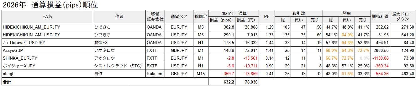 ohagiが大きくやられてしまいましたね。トレンド系のEAなので、現在の相場の動きに耐えられなかったようです( ゚Д゚)