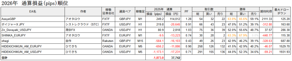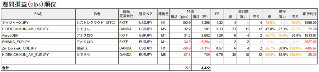 ん~今週もEAはパッとしない成績ですね~。なかなか不調から脱する事が出来ない状態が続いています。