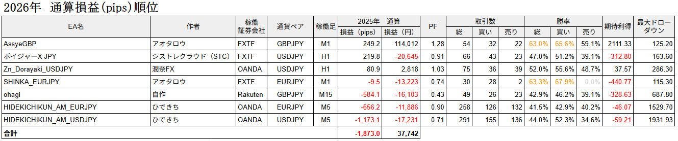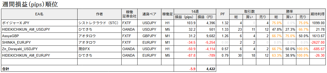 ん~今週もEAはパッとしない成績ですね~。なかなか不調から脱する事が出来ない状態が続いています。