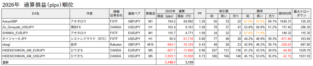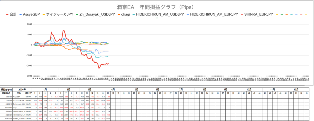 私の主力のAssyeGBPとボイジャーXは不調でしたね。ここ最近はなかなか成績が振るわない時期が続いております。